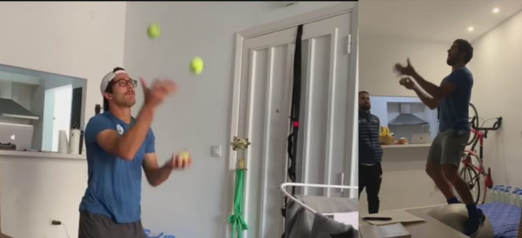 Es “como si fuera un entrenamiento normal y sin cuarentena. Hacemos trabajo en tierra que podemos aplicar al agua una vez volvamos a la piscina”, explica.