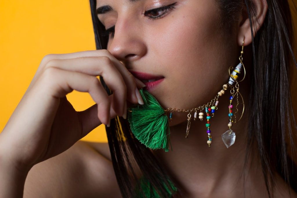 La experiencia multicultural de María, le han permitido crear joyas con materiales no convencionales. Ella es una diseñadora que explora constantemente diferentes formas de utilizar técnicas artesanales para reciclar.