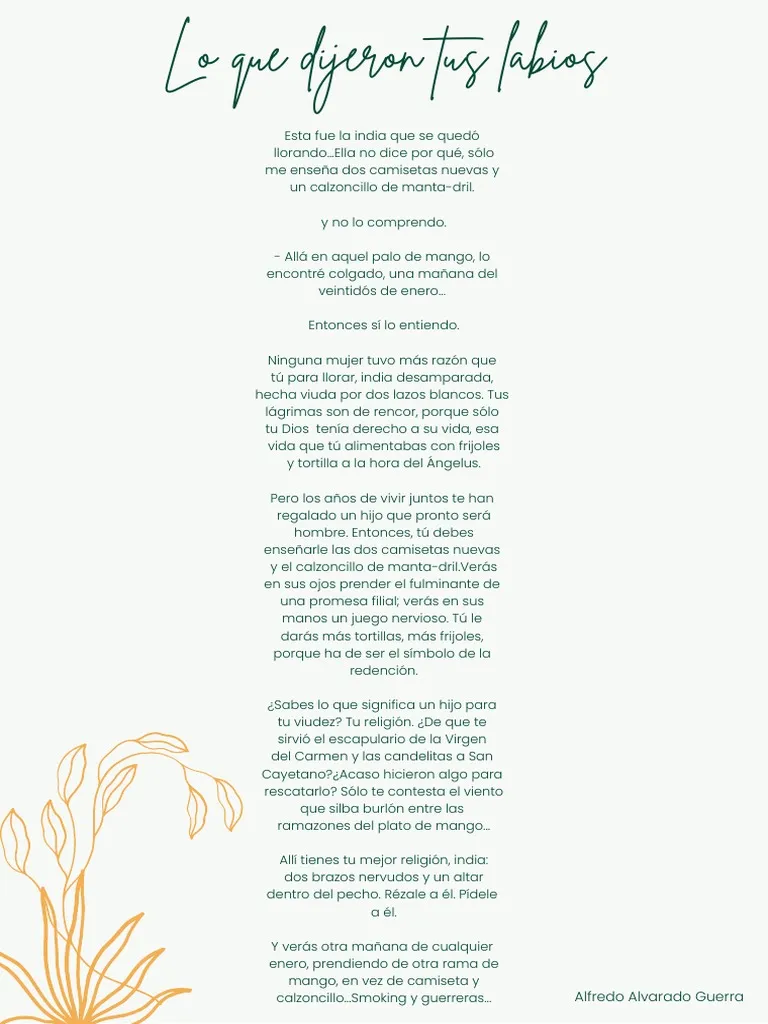 “Oh, Nahuizalqueña, india de mi pueblo, retrato nativo, madre de mis días, yo sólo reclamo tu voz verdadera”, Alfredo Alvarado Guerra.